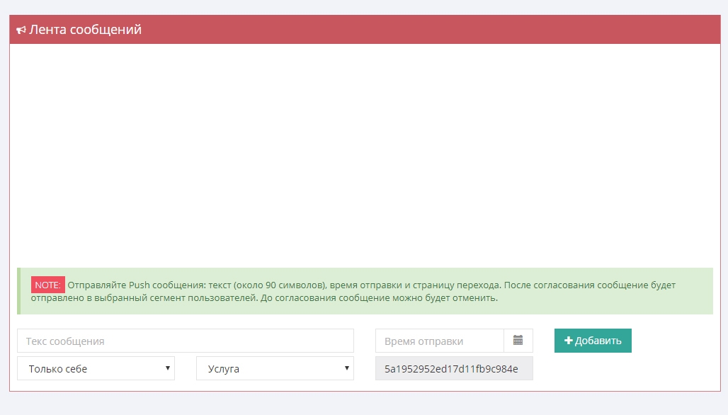 Шаг 5. В соответствующем поле установите таймер ‒ время, когда сообщение будет отправлено. Затем нажмите кнопку «Добавить». Поздравляем, ваше первое push-уведомление отправлено на модерацию, после прохождения которого, оно будет разослано пользователям.