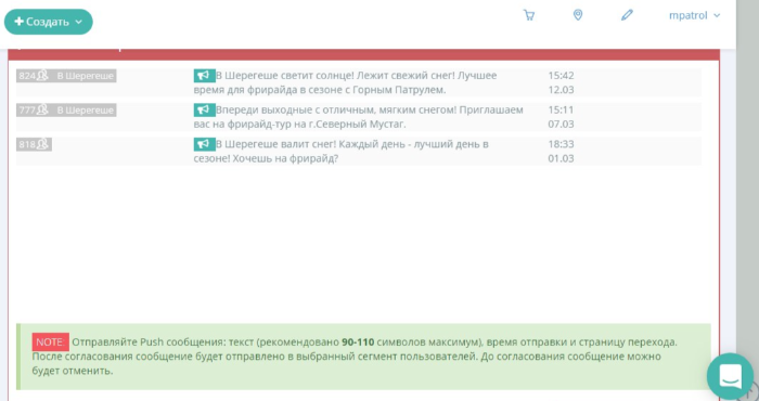 «Завтра 23 февраля! Шерегеш призывает тебя в свою армию. Заходи в Афишу и выбирай, где жечь!» - поздравление рассылаемое всем пользователям, независимо от гео-локации.