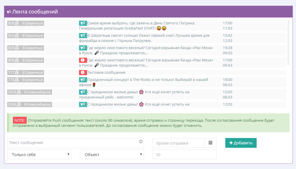 Мы можем сделать рассылку по месту их расположения (Центральный регион, Сибирский, Россия, Алтай), по времени регистрации (только для новых пользователей или только для самых активных). Часто требуется новым людям рассказать о ваших услугах, Push уведомления отлично помогут.
