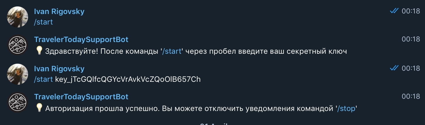Все уведомления о бронировании услуг - туров, гостиниц, экскурсий приходят пользователю в чате поддержки в виде отдельного диалога. В этом чате туристы могут уточнять детали маршрута, оплачивать (через ссылку на оплату), общаться с организатором.